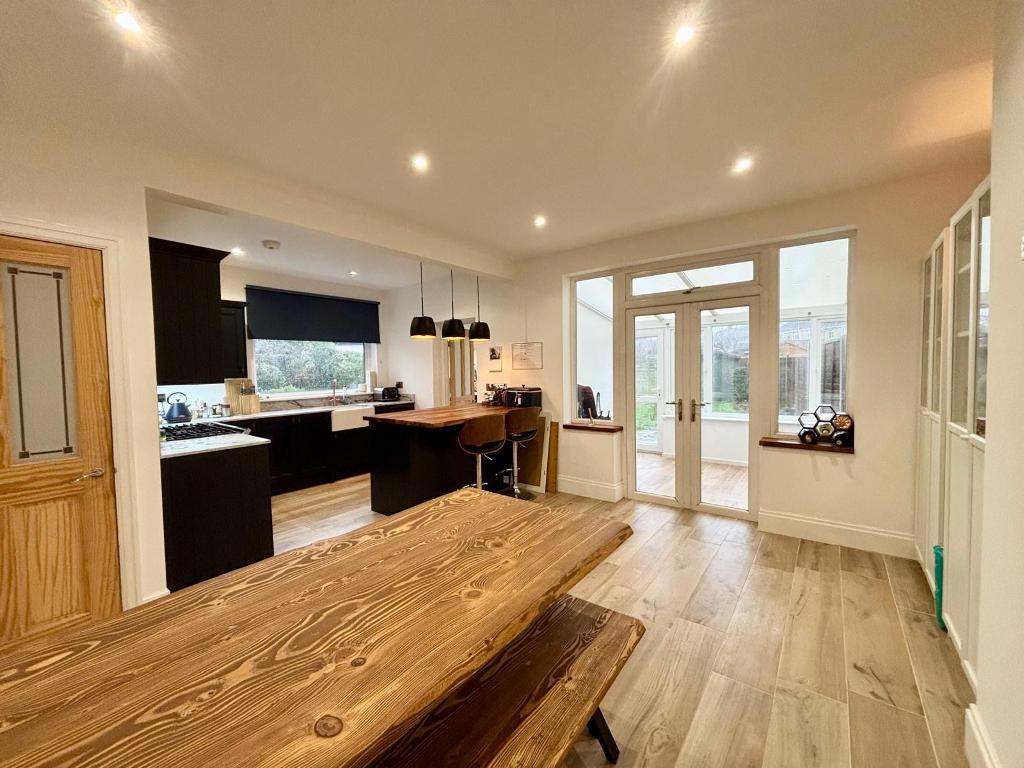 Once inside you will find a large traditional style entrance hallway with stripped wooden flooring, a separate large lounge which also has stripped wooden flooring and a fantastic open plan kitchen/dining room which was fitted in 2024. This room is well appointed with a good selection of units, stone work tops, breakfast bar and underfloor heating. From here access leads to a utility room/cloakroom and conservatory.