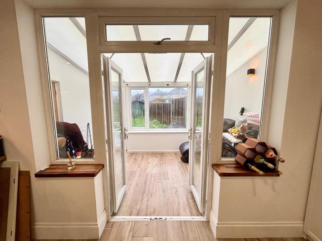 12' 0'' x 7' 6'' (3.68m x 2.29m) Double glazed doors & double glazed windows to rear, matching tiled floor, polycarbonate roof, wall light point, doorway into utility/cloakroom.