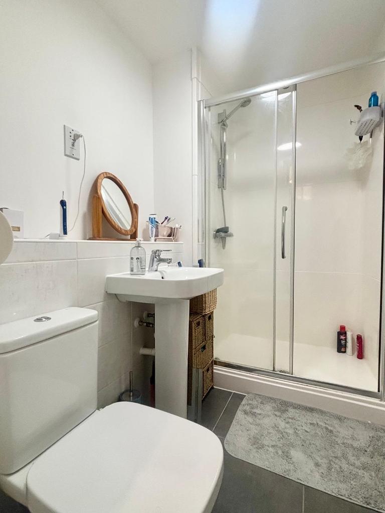 3 Piece suite comprising of shower cubicle, low level WC, pedestal wash hand basin with mixer tap filler, heated towel rail, part tiled walls, shaver point, extractor fan, tiled floor.